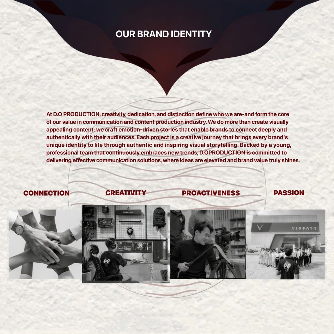 At D.O PRODUCTION, we are more than a content production company — we are visual storytellers who transform ideas into emotion, meaning, and lasting value for every brand. We partner with businesses throughout their journey to build strong brand identities, amplify powerful messages, and forge meaningful connections with their audiences.